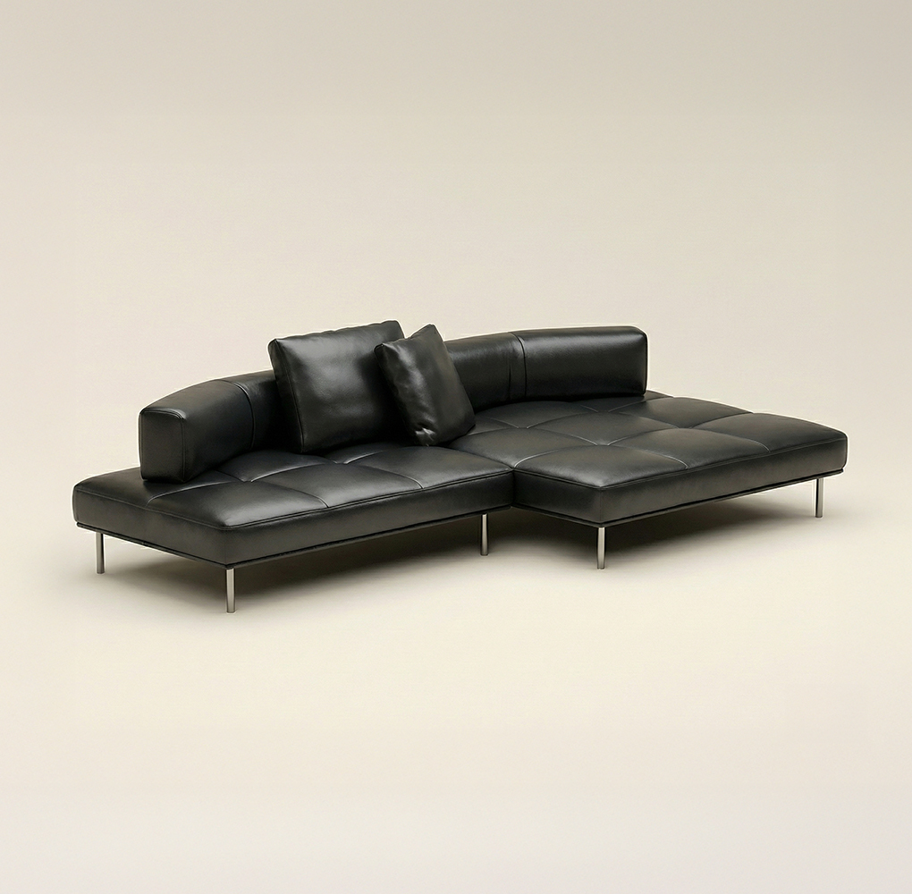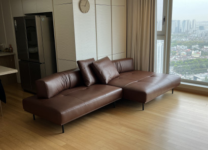 좌방석이 낮고 넓어 안정감과 개방감을 주며, 현대적인 인테리어와 잘 어울립니다. 낮은 등받이와 팔걸이는 공간을 더 넓어 보이게 합니다. 등받이를 조절하여 구부릴 수 있습니다.